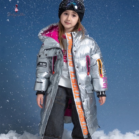 Stilnyashka D-Angel Jasje 2024-8 Groothandel Kinderkleding Luxe, Dikke Warme Zilveren Kleur Meisjesjas, Mode Meisjesjassen